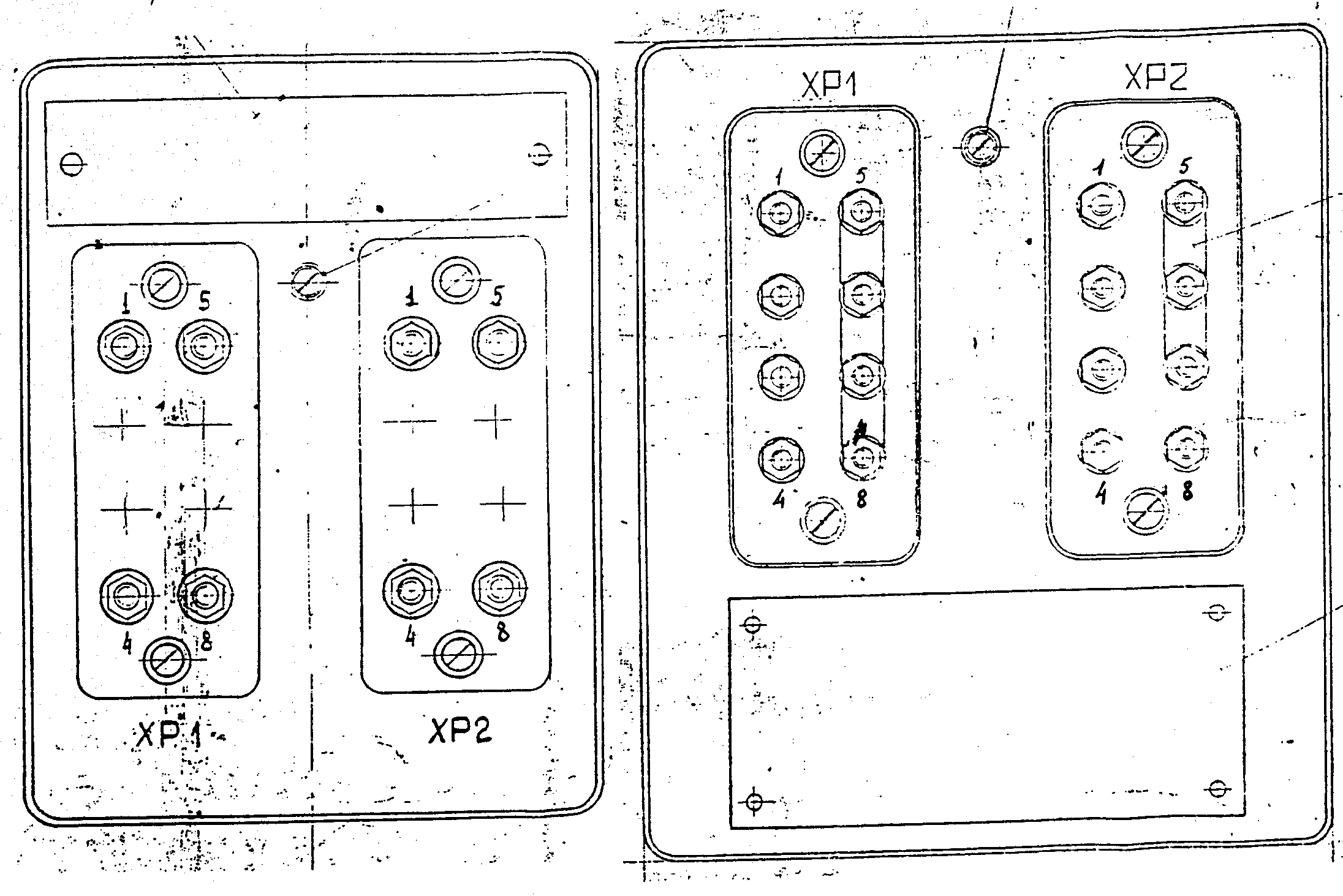 Блоки ДС-1 и БК представляют собой нештепсельные блоки с подключением внешних цепей с лицевой стороны блоков. Нумерация выводов блоков представлена на рис. 1 и рис. 2.